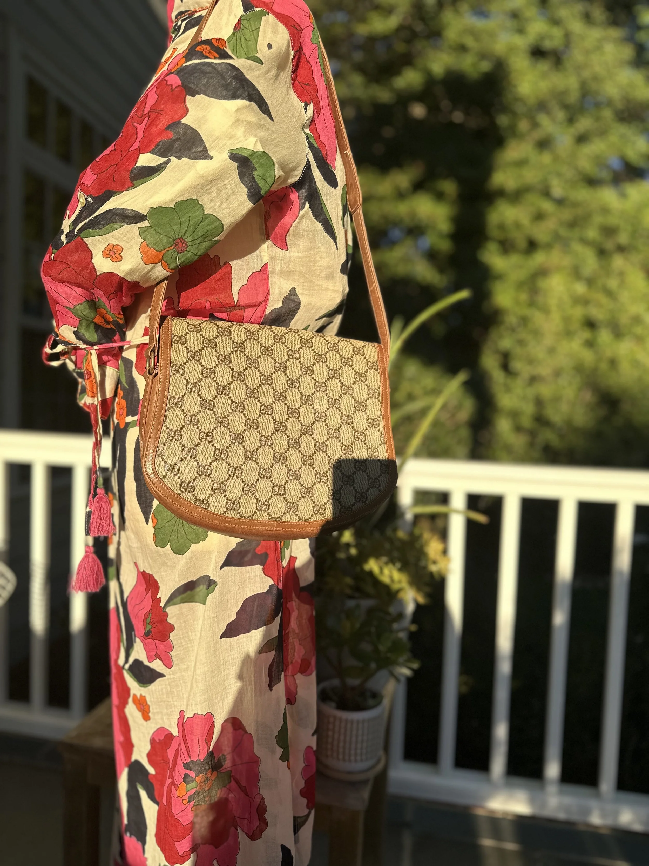 This bag is a very early rare vintage piece! We were so excited to find it! The adorable vintage clasp and the perfect size makes this bag simply irresistible. In the GUCCI coated canvas monogram, this a head turning bag.